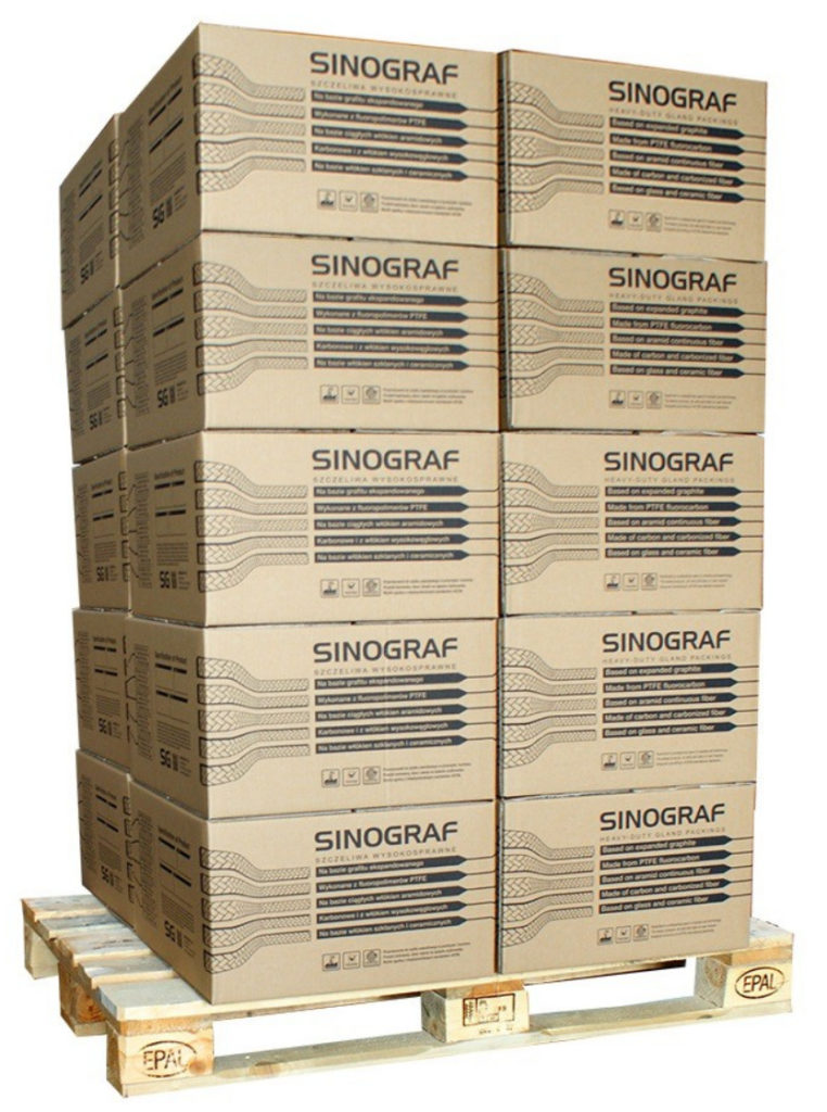 Набивка Tefapak наматывается на катушки весом 2,5 кг для небольших размеров до S8 (квадратный профиль размером 8 x 8 мм) и на катушки 5 кг для размеров S10 и больше. Катушки с набивкой упаковываются в коробки, а затем в сборную коробку размером 46 х 46 х 29 см и весом нетто 20 кг. Крупные заказы поставляются на поддонах EPAL в количестве 20 коробок и весом нетто 400 кг.